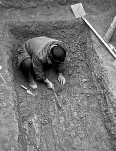墓葬群位于南陽(yáng)市八一路和文化路交叉口的東南角,現(xiàn)在是南陽(yáng)市商貿(mào)中心的建設(shè)工地,共有50座墓葬在此,埋葬的是低級(jí)貴族或高等武士。去年12月,南陽(yáng)市文物考古研究所在這里進(jìn)行文物勘探時(shí),發(fā)現(xiàn)了這些墓葬,并于今年1月8日開始發(fā)掘。