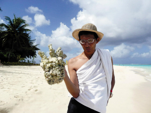 紀連海的博客圖文并茂地記錄了他這次陽光之旅,從照片上可以看出老紀心情不錯。在一張照片上,紀連海上身裹著白色浴巾,頭戴異域風(fēng)情的草帽,手舉珊瑚。陽光反射在老紀1500度的眼鏡上,讓他的眼神看起來十分犀利。記者在紀連海博客留言板上看到,不少網(wǎng)友感嘆老紀身材惹火,造型比芙蓉姐姐擺得還好。