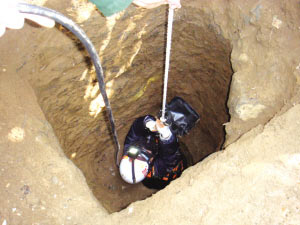 14日,儀征大隊(duì)官兵運(yùn)用移動供氣源、安全吊帶以及防爆燈等設(shè)備,解決了深井現(xiàn)場勘查的難題,警方才得以勘查。目前,尚未發(fā)現(xiàn)洞內(nèi)有文物,具體情況警方仍在進(jìn)一步調(diào)查中。