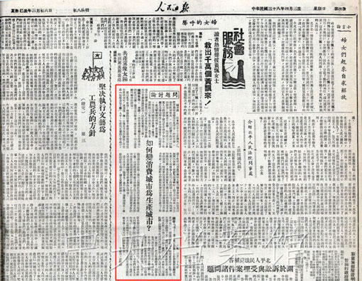 4. 1949年4月3日《人民日報(bào)》發(fā)表的問題討論:如何變消費(fèi)城市為生產(chǎn)城市