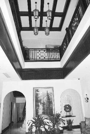 推開足有五米寬鏤空鐵藝的玻璃大門,記者走進(jìn)這幢神秘的建筑,只見大廳寬敞氣派,內(nèi)部家具擺設(shè)復(fù)古而豪華,墻上則是一些老的照片和油畫作品,燈飾也是流行于民國(guó)時(shí)期的西洋式樣。大廳一角的用途為接待客人,兩旁為居住區(qū),都是一間間單獨(dú)的客房。