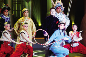 昨晚頒獎晚會上的最大亮點莫過于著名表演藝術(shù)家裴艷玲攜眾弟子登臺獻演。在京劇《響九霄》的主題音樂中,裴艷玲的眾位弟子分別扮作哪吒、沉香、武松、林沖、陸文龍、鐘馗、響九霄、趙云等亮相,依次展示各個人物最為觀眾熟悉的經(jīng)典動作和片段。當裴艷玲唱著《響九霄》的四平調(diào)走上舞臺時,掌聲雷動,經(jīng)久不息,眾弟子圍繞在老師身旁。正可謂“名家寶刀不老,新秀層出不窮”。