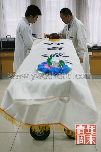 這是年輕的整容師一天中最普通的一單工作,只用時(shí)10分鐘。一天最少完成20具。對(duì)于張洋來說,早已習(xí)慣了這份工作!盎蛘哒f,我必須學(xué)會(huì)麻木!睆堁蟾嬖V記者。