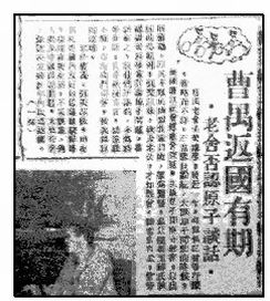 至于曹禺,到美之后,時(shí)有信札寄國(guó)內(nèi)友好如佐臨張駿祥等,據(jù)聞在美生活,不甚愜意,遇上問(wèn)及中國(guó)政治問(wèn)題,尤為奇窘,最近決定將于年內(nèi)取道返國(guó)。(一知)