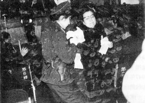 1967年1月6日,王光美聽機(jī)要秘書劉振德說,剛接到自稱北京醫(yī)科大學(xué)附屬第二醫(yī)院醫(yī)生的電話,說平平從學(xué);丶彝局斜黄囓垟嗔送龋桉R上截肢,要家長立刻到醫(yī)院簽字。王光美聽了這個消息,腦袋頓時“嗡”了一下,話都說不出來。劉少奇一聽果斷地說:“走,馬上到醫(yī)院去!”王光美這時想起了周總理的指示,焦急地含著眼淚說:“總理不讓我們離開中南海呀!”“我是家長,這么小的孩子因為我挨批挨斗,又遭這么大的不幸。走,去醫(yī)院!”劉少奇氣憤地邊說邊穿大衣。他見王光美猶豫,對她說:“你跟我的車去!”劉少奇還以為他的吉斯車外出能安全。劉少奇、王光美驅(qū)車來到醫(yī)院時,已被當(dāng)做人質(zhì)的兒子源源、女兒亭亭急忙跑到父母親跟前高喊:“他們要抓媽媽!”王光美立刻明白了這是一場騙局,心想千萬不能讓劉少奇落在他們手里!她立即快步迎面走向造反派,大聲喝道:“不是王光美的都走!”劉少奇不想馬上就走,衛(wèi)士賈蘭勛反應(yīng)快,一把架起劉少奇坐回汽車?yán),開回了中南海。