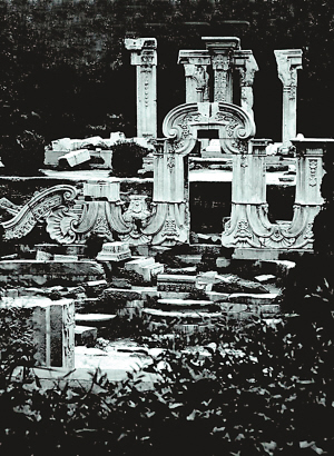 皇家宮殿被搶劫破壞的悲慘場面令埃里松感到難受。他從宮殿走到庭院,觀賞這座園林,覺得舒服些。不過他又看見到處都是跑動(dòng)著的搶劫人群,他們“朝宮殿、寶塔、文源閣跑去”。