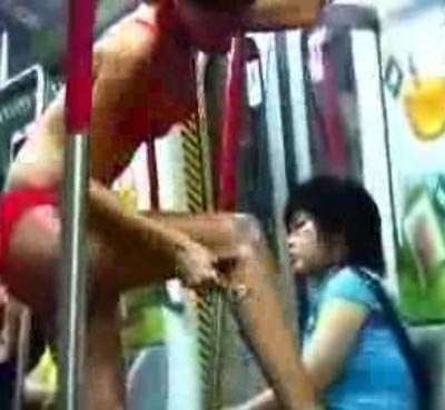 昨天(6月2日),記者在網(wǎng)上搜索,發(fā)現(xiàn)廣州地鐵上也曾有多宗雷人行為藝術(shù)表演。在一張名為“廣州地鐵上的雷人一幕”照片上,兩名打扮女性化的男子,各自抱著一個(gè)枕頭坐在地鐵上談笑風(fēng)生。此外,還有一段“廣州地鐵上的行為藝術(shù)”視頻更是讓人不可思議,一名打扮成空姐模樣的女子上到地鐵后,立即放下行李箱,脫去外套和襯衣,把地鐵扶桿當(dāng)作晾衣架,全身上下只剩下內(nèi)衣,她不緊不慢拿出鏡子抹完口紅后,把腳踏在車廂內(nèi)的坐椅上,然后刮起了腿毛,之后,又把衣服穿上,不少乘客見(jiàn)狀紛紛躲避。