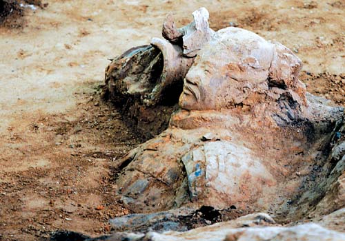 這一次,發(fā)掘過(guò)程中就將采用現(xiàn)場(chǎng)彩繪保護(hù)工藝,讓兵馬俑仍因遍身施彩而鮮活生動(dòng)。這項(xiàng)工藝是中德專家歷經(jīng)十余年探索的成果,2001年通過(guò)國(guó)家文物局成果鑒定,達(dá)國(guó)際領(lǐng)先水平。具體說(shuō),辦法之一是選用抗皺縮劑和加固劑聯(lián)合處理法,綜合利用噴涂、點(diǎn)涂、注入法等將化學(xué)物品注入,加固保護(hù),減輕彩繪對(duì)環(huán)境的敏感度,也就是邊細(xì)細(xì)清理俑體,邊及時(shí)為暴露在空氣中的彩繪穿上“保護(hù)衣”,觀眾今后會(huì)看到一個(gè)色彩斑斕的威武軍陣!