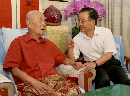 中新網(wǎng)7月11日電 據(jù)中國(guó)政府網(wǎng)消息:“季老,我看您來(lái)了!2006年8月6日上午9時(shí),中共中央政治局常委、國(guó)務(wù)院總理溫家寶一走進(jìn)解放軍總醫(yī)院病房,就緊緊握住季羨林先生的手說(shuō):“今天是您95歲生日,我向您表示祝賀!