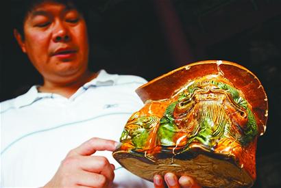 這次發(fā)掘的文物有幾件以前在濟(jì)南地區(qū)很少出土,除了上面說(shuō)的銅印章,還有兩件宋代陶瓷枕。兩件陶瓷枕中完整的一 件為白釉印花枕,長(zhǎng)約20厘米,高10厘米,寬11厘米,兩個(gè)枕面一側(cè)還有一抹綠色,十分鮮艷。李銘說(shuō),這件白釉印花枕所用胎土為高嶺土,文飾清晰,線條 流暢,品相完好,可以說(shuō)是濟(jì)南地區(qū)出土的同類(lèi)器物中最精美的,也體現(xiàn)出宋代人的審美情趣。另一件為三彩獅子牡丹紋枕,出土?xí)r殘破,現(xiàn)經(jīng)整修,基本復(fù)原了整 體面貌。這件陶瓷枕的枕面上刻印的是牡丹紋飾,牡丹為紅色,周?chē)芯G色葉子,顯得很是艷麗。枕身主要的一面為一只堆塑的獅子,形態(tài)逼真,富有活力。李銘指 著獅子牡丹紋枕對(duì)記者說(shuō):“這是一件宋代的三彩器,別看有點(diǎn)殘,但價(jià)值比白釉印花枕還要高,因?yàn)橄襁@樣做工精美、色彩保存基本完好的三彩陶瓷枕少有出土。 而且這件枕可能是淄博窯的作品,也就是咱們山東自己的窯燒制的,雖然不是著名窯口的產(chǎn)品,但對(duì)于山東考古來(lái)說(shuō)具有更高的價(jià)值。這樣的陶瓷枕在濟(jì)南地區(qū)出土 是非常少見(jiàn)的。”