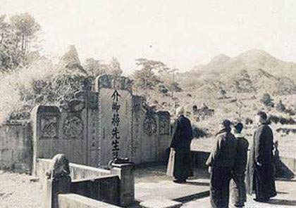 兒媳、孫子都來(lái)了以后,蔣介石領(lǐng)著他們一同來(lái)到蒼松環(huán)繞的蔣母墓前。
