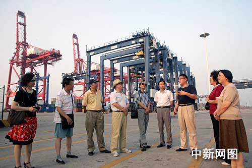 詩人們一走入連云港港口,巨大的塔吊和五彩繽紛的集裝箱立刻映入眼簾。詩人們大多是第一次到港口,立刻被這里獨(dú)特的景致所吸引。當(dāng)了解到,連云港港口是世界綜合實(shí)力百強(qiáng)港、全國十強(qiáng)港,2009年港口吞吐量將達(dá)到億噸,集裝箱突破300萬標(biāo)箱,大家再次驚嘆,涌動起無限的詩情。