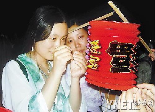 手提燈籠,身著襦裙、青衣,發(fā)髻上的簪子一步三搖,幾十名“古代”女子一出現(xiàn)在后海,就引得其他游人駐足。當她們提著燈籠站成一排,仰望星空中的織女星開始“拜織女”時,旁邊的相機更是閃個不停!罢嫫!”一位游人贊嘆。