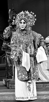 “鎧甲” 行話為“靠”,造型很像甲胄。武將扎上“靠”,表現(xiàn)出人物威風(fēng)凜凜、氣宇軒昂的英雄氣概!榜蕖痹诰﹦》b里,屬于便服,不論哪個行當(dāng)或哪種身份的人物都可以穿這種服裝。旦行的褶子為對襟,略短。褶子如繡有飛鳥、蝴蝶、花卉等圖案的稱為花褶子;沒有刺繡的稱為素褶子!班,繡有團(tuán)龍團(tuán)鳳圖案的黃帔,為皇帝、后妃、公主所穿;繡有鶴、鹿、牡丹、花卉等圖案的帔,為宰相、重臣、紳士、夫人等人物所穿;狀元登科和新婚拜禮時穿大紅繡花帔;一般文人學(xué)士只穿素帔。下層人物也各有專門服式。除兵卒的衣外,劊子手、龍?zhí)拙刑囟ǖ囊。漁家、堂倌、書童穿對襟粗布衣褲。還有僧人、道人穿的八卦衣、道姑衣、法衣等。包括各路神仙也有屬于各自的服飾。(職茵 整理)