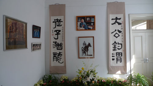 呂老遺像兩側(cè),是散文家黃苗子先生寫一副對(duì)聯(lián):“太公釣渭 老子猶龍”。呂彤林說(shuō):“父親 喜歡黃苗子的樸拙的書法,對(duì)姜太公和老子那種去留無(wú)意的境界很向往,對(duì)名利不以為意。”