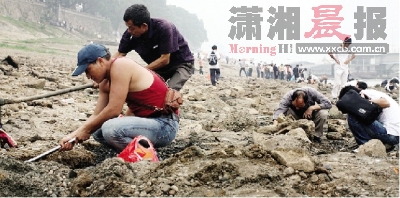 挖“寶貝”的人,多集中在湘江橘子洲大橋至杜甫江閣段的河邊。