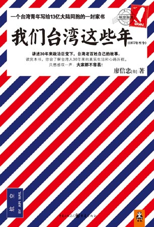 “我試著通過我的成長歷程,將這些社會事件結(jié)合起來,對于這些社會事件及社會變遷,我盡量不去做評論,只將它們很客觀地記錄下來。”廖信忠表示,“我不敢說我寫的這些文字就完全代表了臺灣人的想法,但若您看了能對臺灣多一分了解和理解,那我就萬千感動了!