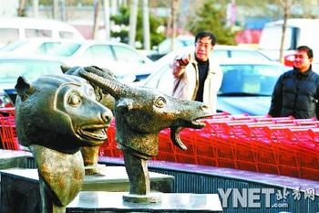 據了解,該超市于本月11日剛剛開業(yè)。超市負責人告訴記者,“十二獸首”并非超市所建,而是屬于超市所在的“城南大道”大廈。負責該大廈物業(yè)工作的京豐物業(yè)公司張經理說,這十二個獸首是開發(fā)商在修建大廈之初就同時建造的。