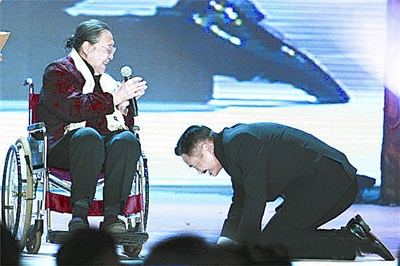 被譽(yù)為2010中國(guó)第一史詩巨片的《孔子》,1月中旬在北京舉行首映慶典,慶典上孔子的第77代嫡孫女孔德懋女士坐著輪椅上臺(tái),周潤(rùn)發(fā)便一直在旁邊像子侄一樣跪著聽老太太講話?椎马渴①澲軡(rùn)發(fā)在電影《孔子》中飾演孔子的精彩表演,并將寫有“永遠(yuǎn)的孔子”的橫幅贈(zèng)送給發(fā)哥。這時(shí),周潤(rùn)發(fā)出人意料地向孔女士認(rèn)真雙膝跪地叩首,隨后,與孔女士溫情擁抱,場(chǎng)面令人動(dòng)容……