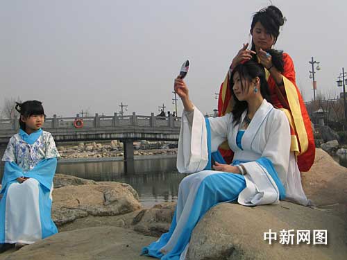 中新網(wǎng)西安3月7日電(記者 冽瑋)敢將十指夸針巧,不把雙眉斗畫長……7日下午,西安的一些漢服愛好者聚集在唐曲江池遺址公園,展示千百年前中國古代女性盛妝打扮的姿容,迎接“三八”國際勞動?jì)D女節(jié)。