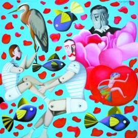 1956年出生,現(xiàn)為上海師范大學美術學院教授、中國美術家協(xié)會會員、中國油畫學會理事、上海美術家協(xié)會常務理事的王向明,已經(jīng)是香港蘇富比的“老朋友”了,此前曾獲全國青年畫展金獎、全國美展銀獎、臺灣“隔山”大獎賽優(yōu)秀獎等等,作品為中國美術館、上海美術館、福岡美術館以及海外私人收藏的他,是這次作品參與拍賣的唯一一位上海畫家,而在50多件現(xiàn)代拍品中,《向大師致敬·波波永遠愛心蕩漾》是蘇富比在“嚴密”關注他的創(chuàng)作動態(tài)的前提下,最終選中的一幅作品:“上海其實一直都有文化淵源,人才輩出,但在文化市場上卻比較弱勢,周立波的脫穎而出對我啟發(fā)很深,我們不能太謙虛,要表現(xiàn)強烈的海派風格,推崇上海文化、文明,這也屬于上海的藝術家之間的惺惺相惜。 ”
