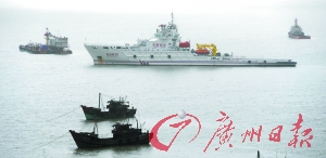 昨日上午11時許,本報記者搭乘渡輪抵達南澳島,還未進入縣城,在環(huán)島公路就遠遠望見了停在港灣內(nèi)的“南天順”號打撈船、“德新”號拖輪。此時,“南澳 Ⅰ號”水下考古隊隊長崔勇正在忙碌著為這個打撈船組辦理相關(guān)的打撈許可手續(xù)。據(jù)了解,由于氣象條件改善,“南天順”號打撈船已確定今天進行定位。昨日下午,“南澳Ⅰ號”水下考古隊員們在邊防派出所的護送下,已搬運相關(guān)設(shè)備進駐南天順。