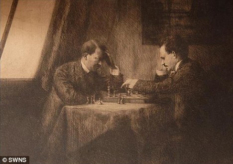 據(jù)《每日郵報(bào)》4月14日?qǐng)?bào)道,一張?jiān)?909年創(chuàng)作的希特勒與列寧下棋的素描畫(huà)15日將在英國(guó)一家拍賣(mài)行進(jìn)行拍賣(mài),專(zhuān)家預(yù)計(jì)拍賣(mài)價(jià)為4萬(wàn)英鎊。這個(gè)寬50.8厘米,高38.1厘米的素描畫(huà),據(jù)考證也是唯一一幅同時(shí)有希特勒和列寧親筆簽名的畫(huà)作。