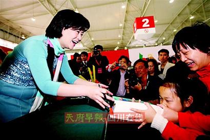 她在地震后徒步進(jìn)入汶川尋找女兒;她花了近1年的時(shí)間用“一指禪”敲出一部回憶錄《映秀的月》!她,就是周紅令。昨日,這位平凡而偉大的母親帶著自己的女兒雨雨來(lái)到書(shū)博會(huì)現(xiàn)場(chǎng),為該書(shū)簽售。