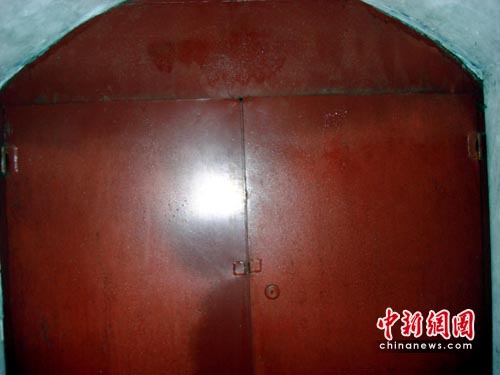 日前,記者聽(tīng)說(shuō)少林寺在建造一座地宮,便前往一探究竟。這座傳說(shuō)的人造地宮,位于塔林西側(cè)約50米處,門(mén)口由青石砌成。地宮的石門(mén)不大,高約1米,寬約0.8米,被一把銅鎖鎖住。通過(guò)石門(mén)約5公分的門(mén)縫往里看,只能看到里面漆黑一片。當(dāng)記者用卡片相機(jī)伸進(jìn)石門(mén)門(mén)縫拍攝時(shí),里面又是一扇紅色的鐵門(mén),右側(cè)的墻壁上還安裝有電源開(kāi)關(guān)。