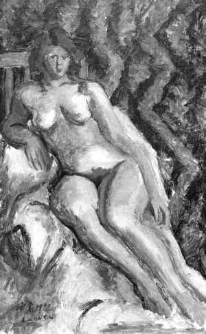 正因?yàn)檫@段著名故事,劉海粟先生的人體作品增加了許多傳奇色彩,成為中國人體藝術(shù)繪畫發(fā)展的象征性藝術(shù)符號(hào)。北京匡時(shí)2010年春拍出現(xiàn)的這幅油畫《裸女》,尺寸為80×50cm,創(chuàng)作于1931年,是劉海粟先生第一次去歐洲考察時(shí),在巴黎所繪,選用的是西洋模特。作品完成后,參加了由上海市政府主辦的1932年在上海英租界北京路貴州路口七號(hào)英士紀(jì)念堂湖社舉辦的《劉海粟游歐作品展覽會(huì)》。此次展覽由抗日戰(zhàn)爭時(shí)期擔(dān)任國民政府主席的林森在畫展引言中說,“中國畫主神韻,外國畫偏形相,海粟作品獨(dú)能洽中外,另辟蹊徑自足獨(dú)步一時(shí)”;蔣介石為畫展題字為“海天鴻藻”;國民黨上海市市長吳錢城為展覽會(huì)寫序;北大校長蔡元培題跋;以及陳樹人、路易賴魯阿、潘公展等社會(huì)各界名人為畫展致詞。隔年,商務(wù)印書館出版的《海粟油畫》又一次刊登了僅有的此幅人體作品。