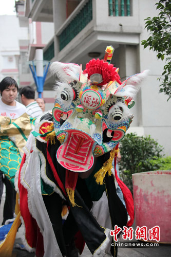 上午9點(diǎn)半,沙欄嚇村的吳氏宗祠前,吳姓老人們?cè)陟籼脙?nèi)向祖宗敬香。麒麟舞依然是主要的慶;顒(dòng)。隨后,由兩頭矯健的麒麟帶隊(duì),40多位吳氏村民組成的麒麟隊(duì),連同他們吸引的大批村民和觀光客一同浩浩蕩蕩地繞村一周,為全村祈福迎祥。半個(gè)多小時(shí)后,游行隊(duì)伍在敲鑼打鼓和鞭炮齊鳴聲中抵達(dá)祭祀媽祖的天后宮。