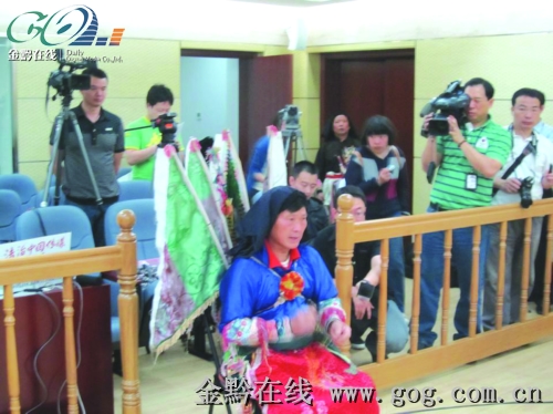 昨日的庭審現(xiàn)場,兩位全身披掛地戲服飾的地戲演員詹學彥、曾玉華作為證人出庭作證。兩人證明了當初受《千里走單騎》劇組邀請,參加拍攝了“千里走單騎”、“戰(zhàn)潼關”兩幕安順地戲的事實。詹學彥還委曲地說,影片上映后,他被許多屯堡人罵他“賣祖宗”。