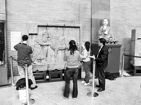 賓大博物館中國館中的文物修復,并未影響其對外開放,專家們的工作,完全是敞開式的,觀眾可隨意參觀。許多觀眾對西安的文物專家表示欽佩。一位名叫程佳來自北京的中國留學生在“兩駿”現(xiàn)場告訴記者:賓大博物館的中國館不錯,從青銅獅子到二駿馬,從慈禧的水晶球到一尊尊的佛像。讓我們這些留學海外的學子既自豪又感慨。自豪是因為這一件件藝術(shù)展品都滲透出我們博大精深的幾千年文明,感慨是因為這些展品也同樣記錄了當年屈辱的歷史。