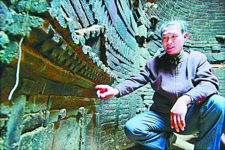該座宋墓位于南水北調(diào)焦作段普濟路一處工地上。記者昨日到達現(xiàn)場時,南水北調(diào)焦作段施工人員正在幫助文物工作人員保護發(fā)掘現(xiàn)場。據(jù)焦作市文物工作隊古建專家趙德才介紹,圓形宋墓在焦作市所發(fā)掘的宋墓中比較罕見,這座宋墓上所雕刻的建筑結構清晰可見,對研究宋代建筑有一定價值。