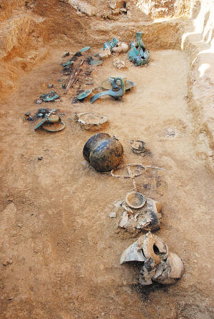 3月15日至5月18日,在省文物考古隊(duì)領(lǐng)隊(duì)楊帆研究員的帶領(lǐng)下,工作人員在西老硐坡發(fā)掘了15座漢墓,挖出了400余件(套)文物!斑@是一個(gè)巨大的漢墓群,總面積2萬平方米,面積之大實(shí)屬罕見!睏罘f,這個(gè)漢墓群發(fā)現(xiàn)比較早,今年已是第四次發(fā)掘。因?yàn)橛昙炯磳砼R,考慮到安全因素,野外發(fā)掘?qū)⒁Y(jié)束,現(xiàn)在專家將在室內(nèi)對文物進(jìn)行修復(fù)。剩下的8000多平方米,將在國慶節(jié)以后再次發(fā)掘。