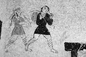 地埂坡墓群位于高臺縣河西村南3公里黑河南岸的戈壁臺地上,是河西走廊發(fā)現(xiàn)的又一處重要的魏晉時(shí)期墓葬群。該墓葬最大的“亮點(diǎn)”是:墓室內(nèi)有內(nèi)容豐富、技藝精湛的壁畫,表現(xiàn)了農(nóng)耕、畜牧、宴飲等內(nèi)容,出現(xiàn)了多個(gè)少數(shù)民族形象,這是以往河西魏晉墓中不多見的,為研究河西地區(qū)歷史、中西文化交流以及民族融合等提供了珍貴的資料。