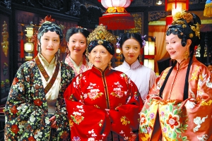 曾備受質(zhì)疑的“銅錢(qián)頭”,在融于劇中場(chǎng)景再看時(shí),黛玉、寶釵以這樣發(fā)型出現(xiàn),并不十分別扭。不過(guò),賈母、王夫人、薛姨媽這樣的中老年婦女也頂著一頭銅錢(qián)還是讓人感覺(jué)不太好,少了貴族婦女應(yīng)有的雍容華貴之氣。