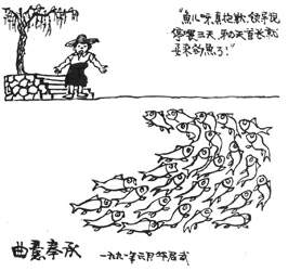 1957年,華君武推出了“人民內(nèi)部諷刺漫畫(huà)”。他針對(duì)大躍進(jìn)浮夸風(fēng)創(chuàng)作了《疲勞過(guò)度癥》,針對(duì)動(dòng)不動(dòng)給人扣大帽子創(chuàng)作了《杜甫檢討》,針對(duì)長(zhǎng)篇空洞發(fā)言創(chuàng)作《誤人青春》,針對(duì)生造簡(jiǎn)化字創(chuàng)作《倉(cāng)頡認(rèn)字》,針對(duì)多子女創(chuàng)作《大“小家庭”》,批評(píng)相聲水平不高創(chuàng)作了《聽(tīng)相聲?》等,都給讀者留下了極為深刻的印象!皟(nèi)部諷刺漫畫(huà)”在“文革”中成為“罪證”,遭到長(zhǎng)期批判,華君武被迫擱筆10年,但”文革“后,這把”匕首“依然鋒芒犀利,創(chuàng)作出一系列批評(píng)諷刺時(shí)弊和人性弱點(diǎn)的漫畫(huà)。