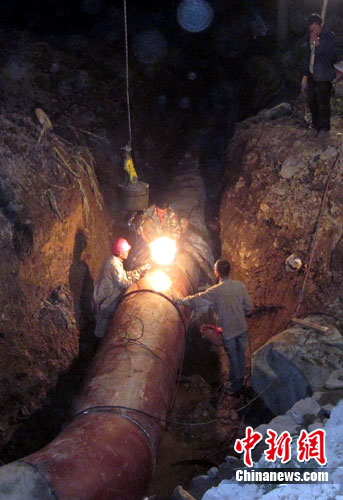 2日18時(shí)許,記者來(lái)到施工現(xiàn)場(chǎng),此時(shí)燈火通明,上百名工人正在緊張地作業(yè)。據(jù)一名工人介紹,他們現(xiàn)在分成兩組進(jìn)行搶修,每班工作都在12小時(shí)左右,基本上吃住都是在施工現(xiàn)場(chǎng)。