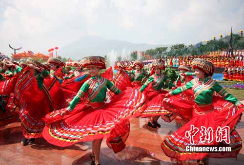中新網(wǎng)西昌8月4日電(記者劉忠俊)4日上午,四川涼山州西昌市數(shù)千名群眾身著節(jié)日盛裝,跳起了獨(dú)具民族特色的歌舞,拉開(kāi)了第六屆中國(guó)•涼山彝族國(guó)際火把節(jié)的序幕。