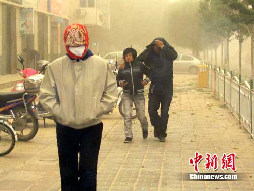 10月22日凌晨5時許,新疆巴州且末地區(qū)出現(xiàn)沙塵天氣,氣溫下降至3攝氏度。上午10時許,該地區(qū)逐漸出現(xiàn)5-6級大風(fēng),到了中午12點(diǎn),風(fēng)力逐漸增大,陣風(fēng)達(dá)到7級,大風(fēng)夾帶著大量沙塵彌漫在大地和村莊,20米之外的物體能見度模糊,路上的車輛打開車燈緩慢行駛,街面行人明顯減少,家家戶戶都緊閉著門窗。