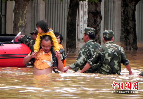 目前,有關(guān)部門正在營救災(zāi)民,抗洪救災(zāi)工作正在進(jìn)行。(完)