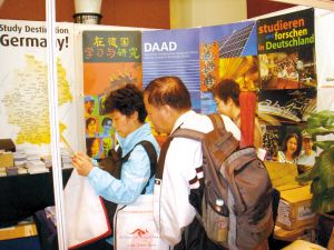 2009年留學(xué)已進(jìn)入申請(qǐng)的關(guān)鍵期。近日,國(guó)際教育展接連舉行,大大小小不下十場(chǎng),而最重頭的啟德教育展和中國(guó)國(guó)際教育展也將在本周六分別在花園酒店和東方賓館舉行。記者在教育展上發(fā)現(xiàn),到教育展上咨詢的多數(shù)是家長(zhǎng),咨詢會(huì)大多成了“家長(zhǎng)會(huì)”。
