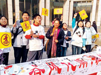 “春風(fēng)化雨,潤(rùn)物如‘蘇’”。昨天上午在北京大學(xué)百年講堂前,十幾名學(xué)生手舉“蘇”字黃旗齊呼:“歡迎支持蘇彥捷老師……”有12年歷史的北大“十佳教師”評(píng)選昨日開(kāi)始。由于三角地的拆除,因此這是北大歷史上首次將“尊師墻”移至百年講堂前,而各院系也首次被集中在一起為候選人拉票吶喊。一時(shí)間,各家吹拉彈唱,“有一種‘快男超女’現(xiàn)場(chǎng)拉票時(shí)的感覺(jué)!痹S多北大學(xué)生表示。
