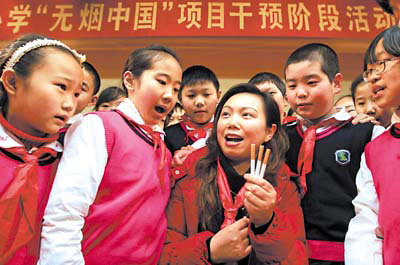 老師在教室、走廊等公共場所吸煙,將受到扣獎金等系列處罰。昨日,我市首個“無煙學校”創(chuàng)建活動在珊瑚實驗小學正式啟動,該校校長邀請全體同學積極參與控煙行動,并隨時監(jiān)督和舉報老師的不文明吸煙行為。