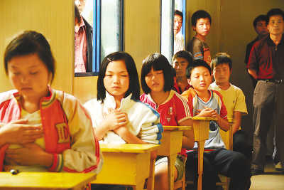 “有了教室,有了生命,我們能夠在廢墟中站立起來,開始更美好的生活,我們強(qiáng)不強(qiáng)?”——在董慧娟的帶領(lǐng)下,28個孩子舉起右臂,右手握拳,喊出“強(qiáng)!強(qiáng)!強(qiáng)!”的口號。