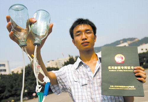 據(jù)了解,余江搞這個發(fā)明是看到地震災(zāi)區(qū)缺少醫(yī)護人員報道后產(chǎn)生的念頭。他是利用暑假兩個月時間刻苦研發(fā),終于發(fā)明了“自動輸液器”,并獲得了國家專利。目前,市場上比較先進的輸液器價格很高,而余江發(fā)明的“自動輸液器”的成本大概只比現(xiàn)在一般輸液器的成本高出20%左右,而且不用手動操作,可減輕醫(yī)護人員勞動強度。目前,他的發(fā)明受到了很多醫(yī)院的關(guān)注。(楊崢 連肖)