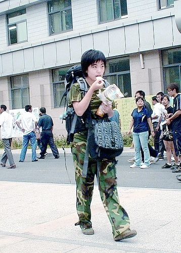 【蔣方舟】:其實還好,大家蠻強韌的,大家強韌程度還是超乎我的想象,然后唱歌干嘛的,有一點高興。但是走到最后,大家連說話都累,連喘口氣都累。當(dāng)時覺得身體到達極限了,然后腿腳都不好使。我記得軍訓(xùn)最后一天,我們談?wù)摶氐饺碎g打算做什么,有很多同學(xué)的理想是吃肉,然后有一個男生的理想是穿便裝,穿女裝,有的同學(xué)的理想是到澡堂洗幾個小時的澡,我的理想是要穿高跟鞋。因為我覺得快跟解放牌膠鞋融為一體了,要崩潰了。