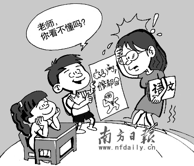 據(jù)了解,正因為“火星文”的晦澀,所以不少同學會在寫周記時使用,不想讓班主任窺見自己的心事。“平時媽媽愛翻我的日記,現(xiàn)在我用火星文她也奈何不了……”說起“火星文”的“妙用”時,廣州市第三中學一位女同學得意地笑了。