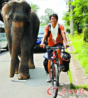 牟陽(yáng)江在泰國(guó)騎車“與象同行”